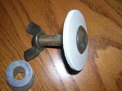 I had a small round piece of 1/8-inch thick fiberglass on hand, so I drilled a hole slightly smaller than 1/2-inch and then used a small file to make the square to fit the brass bolt.