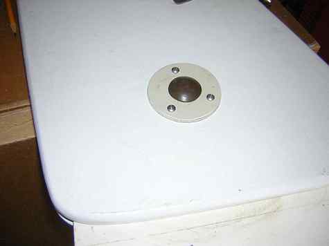 I drilled three small holes in the fiberglass disk, and attached it to my rudderstock with small screws. Who knows... I might even apply a dab of epoxy someday!