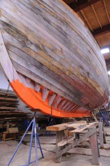 One final note about planking. In the latter half of the 19th century, diagonal planking was used underneath the outer planking upon the frames. These diagonal planks were quite thin, maybe an inch thick. They were nailed down flat. Diagonal planking under the horizontal planks made these ships incredibly stiff at sea.