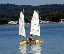 Sailing this Catamaran is very fun and comfortable. I need this boat and like to sail it anytime there is wind to be had and a partner. It isn’t possible to set this boat up without a second hand. I like taking this boat to the OBX for its comfort and its ability to sail in less then a foot of water to windward. That is a big advantage in the OBX.