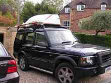 Getting the dinghy on the car for its maiden voyage proved to be a bit of a struggle , more due to the size rather than the weight, the car is over 6 foot high so it's a long way up to push a dinghy and the spare wheel does tend to catch on the way down if care is not taken. To make the job a bit easier I have installed a piece of drain pipe on the rear roof rack member for protection as the dinghy slides on and off. You will probably notice that it is on the front in this picture, my only defence is to say that it was a very early start that day.