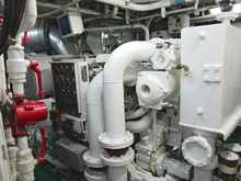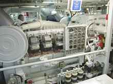 The 8,000 hp engine. It was difficult to get a full view of the engine due to space and equipment |