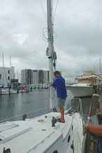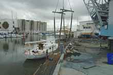 By Monday we had more than recovered and were ready to go. We had Valora at Schubert's dock first thing and then it was hurry up a wait. All there was to do was wait because we had worked so hard to get her ready for the haul out. Most of the work revolved around pulling the mast. All the electronics that had come with the boat were tied to the back stay and it was not easy to get it all apart. I should say it wasn't easy to get it all apart and be able to reassemble it again.