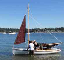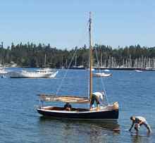 Launching the Dudley Dix-designed DD MINI, finished out by proud owner David Blessing. We were looking forward to seeing how she sailed, but she is so fast we didn't get a single picture of her rocketing around the lower end of Port Townsend Bay! |