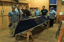 The School also hosted a Finishing Class taught by expert finisher Diane Salguero. The class was attended by twelve students from all over the local area. They worked on the Heidi Skiff built by Rich Kolin's summer class, a second Penn-Yan dinghy, a School-built Willliam Atkin "Teach" class sloop, and the contemporary Joel White-designed "Bangor Packet" rowing shell built by Instructor Bruce Blatchely's 2011 Contemporary class, a very striking boat indeed.