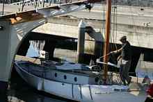 The Paul Gartside-designed Jaquemont Sloop being launched. |