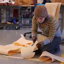 This is a picture taken during the very successful 2011 Sailmaking and Rigging class earlier this year showing one of the students cutting out sail fabric. |