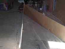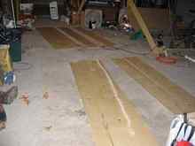 Sanding the fiberglass butt joints took another half hour. It should have been quicker, but I did them the stupid way. Concrete blocks were not nearly enough weight to straighten out the folds in the plastic. I think the better way to do this is one side at a time using clear packing tape. That stuff can make a really smooth, finished surface.