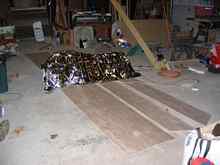 It being October in Wisconsin, I needed an electric blanket and a mylar survival blanket to get the epoxy to cure. (NOTE: The electric blanket was useless, and the work lamps seen below worked a lot better.)
