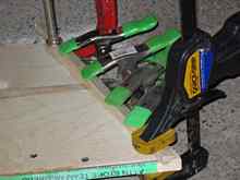 Next, it's time to attach gunwales to sides. Here I used TiteBond III, since it's supposed to be able to cure in 40-degree temperatures. I should have about five degrees to spare. I generally like stainless nails for this sort of job, but I was out. I used 7/8 inch badly-galvanized roofing nails. After the glue cured I had to sand the gunwales smooth. This was totally wasted time, since I could have avoided it by using a hollow ground planer blade in the table saw (forgot I had one) and ¾ inch nails
