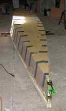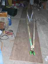 When the glue is cured, we can pull the bottoms of the sides together to meet the form, the sheer and rocker will spring into being. This is where the limitations of Styrofoam as a center form made themselves readily apparent.