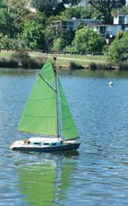 When my Starlet, still unnamed was complete, Roy presented it to me and added “It’s got all the bells and whistles’ to which I replied “That’s it Roy ! BELLS AND WHISTLES it will be !” With her tan gaff rig sails of Jeparra cotton she looked resplendent on the day that we officially launched her at Onepoto, and he had carved out of balsa and beautifully painted an Ancient Mariner helmsman with the name of Charlie Breeze which he insisted “even looks like you !”