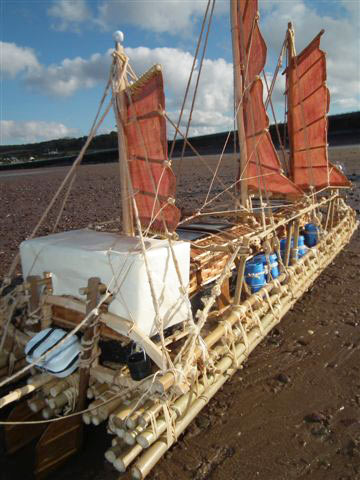 Tim Severin’s book The China Voyage , I understand from Clive Halliwell who lives in Lancashire, England, inspired the build of his model of the impressive ocean going raft Hsu Fu. It wasalso the name of the fullsize vessel, so named after an ancient Chinese mariner ordered by the first Emperor of China to search the Pacific islands for an elixir of immortality. People in China still die so I guess the sought elixir was never found.