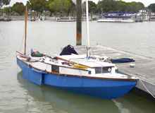 Although on reflection, I decided we had come close but not to the brink. We probably went over about 45 degrees or a bit more - plenty in an unballasted boat. In retrospect, I also had made a mistake by having the leeboard about halfway down. It really wasn't needed broad reaching but I thought it might help if we needed to do a bit of quick maneuvering. But with the waves trying to shove Oaracle sideways, the board resisted that tendency. Instead of yielding to the wave and sliding away from its power, the leeboard tried to hold the boat in place, increasing the heeling tendency of the hull. Put another way, it tripped the hull. If the board had been all the way up, the boat probably would have slid away from the wave without the panic party. On the other hand, if the board had been all the way down. . . . Anyway, after a few more nerve-wracking minutes we were across the mouth of Boca Grande and out of the foul tide. The seas died down and we shot up past Cayo Costa island doing 6.5 to 7 knots. A pause to put in a cautionary reef didn't affect speed at all but made the ride more stable and Oarcle kept up a good clip down the northern part of Pine Island Sound.
