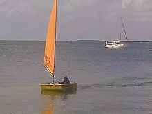 Gary Blankenship (aka Lugnut) sailing ECduck in Key Largo.