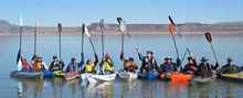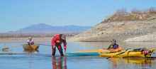 Afterwards seven kayaks and a homemade canoe went north across the lake in search of the place where the Rio Grande enters Elephant Butte Lake.