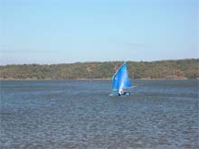 Friday Steve helped me adjust my sail so that my boat was better balanced and I was finally able to tack and go to windward. It was a whole new boat! Vaughan and I screamed up and down in front of the beach, and Water Dancer finally sailed with a bone in her teeth. We buried the bow a couple of times and for the first time ever the splash guard did its job.