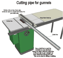 Here’s another jig to slit pipe into a useful gunwale (gunnel?). Scribe a line on top of the PVC tube and another on the pipe you wish to slit. Keep them aligned as you push through the saw and you’ll get a straight cut every time.