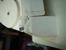 As each transom is different, the method of attachment will have to suit its shape in order for the folded ladder to sit flush or as near to flush as possible as the rope will be between the two. I just pull the knots through a little and the thickness of the rope makes little difference. How you make your attachment will be dictated by its shape and size. Ladybug has a very low transom/splashwell with a thickish motor clamping board at the top, so I glued & through-bolted a block as low as possible, that would be thick enough to let the ladder sit flush with the clamping board when folded.