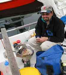 Skipper Bill McClure's cooking on Seacook stove. Photo credit: Derek Jensen |