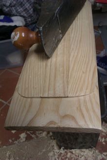 The back was formed using a piece of 19 by 45 (2 by 1) together with the offcuts from beside the hande/shaft of the paddle.