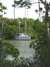 "Shanty" is Med Moored here in the mangroves at the Boca Grande bayou. This was our weekend home, and frequently our spot to weather the cold fronts (which came through weekly every Friday this year). The spot is well protected, but a med moor leaves you beam on to some winds, and we had one 40 knot gust that dragged our 2 hooks, and left us beam on in the mangroves. Happily, these function beautifully as a green cushion, and we suffered very little scratching during our hour in the brush.