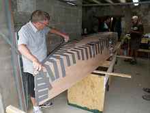 The "plan" was to spend our first week building boats and our second week paddling down the River Loire. The boat which we had settled on building was Mik Storer's Quick Canoe 155 design. (Plans can be found on Duckworks!) Since only Mik and I, and Paul and Sharon needed boats, two was determined to be the number of hulls we would need. Brian Anderson would be sailing & rowing his "Osprey", a 14' flat-bottomed daysailer of his own design, Albert would row his Bolger Pointy Skiff and Peter would paddle his skin-on-frame kayak.
