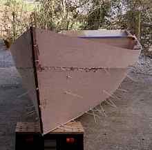 The insides were sealed with a spit coat of epoxy resin, and the outside was coated in fibreglass cloth and resin. The inside and outside was painted with a hotchpotch of paints, but I found that exterior grade, one-coat gloss from Wilkinsons, a UK DIY chain, gave excellent, economical results.