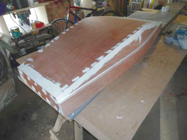 This being my first boat or "will it float" project I took the decision to use what I had in the garage and some advice from an old joiner (my Dad) who when asked about boats said one thing "cascamite it". The use of chine logs, fibreglass and purchasing expensive equipment was now out of the question, as my wife has the purse strings and wasn't tickled pink by the idea.