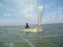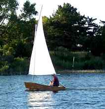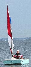 Bill Nolen sailing "Duck Bill" at the 2010 Sail Oklahoma Messabout at Lake Eufaula, OK - Photo by John Turpin |