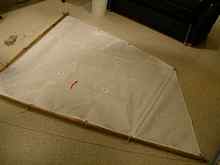 I tied the sail to the boom, rigged some rope loops for the luff of the sail, and decided the next morning, early, before anyone was at the reservoir to see any spectacular failures that might occur, I would see what happened.