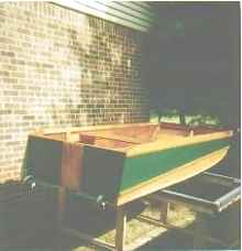 #2 was a lightweight at a finished weight of about 45 lb. With its thin lauan covering over foam, it appeared to be heavily built, and spectators at the ramps were often amazed to see me launch it by tossing it several feet into the water. |