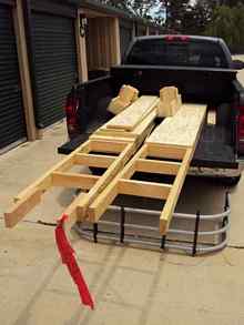 3-4" of each board was trimmed off so that when put together they wouldn't make a full 24' ladder due the length of the shop as mentioned earlier. The two ladder parts are joined with an overlapping 2"x4" board.