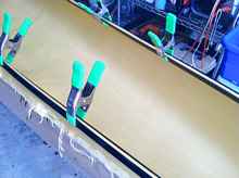 To help with any mess during gluing, I masked off the outside of the hull just below the top edges. The Texas heat had really kicked in by this point so I got a very early start. I arrived at my shop about 5am and got everything ready to go. To combat temperature issues later, I got bags of ice and had them in a cooler. I put my epoxy in a container with water and slowly added ice. Note the thermometer in the corner of the tub.