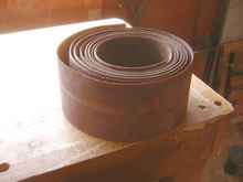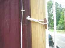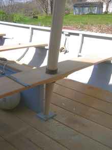 The masts are leathered where they pass through the thwarts using an old drive belt.