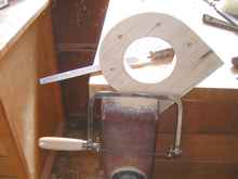 I got the steam box out again for the tiller; I am always amazed at how the oak will bend. This piece of white oak was 1 1/2" wide and 1 3/4 deep, pre-rounded except at the socket. The rudder and tiller stow under the aft deck.
