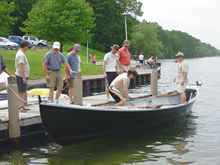 The final article in this series will discuss the performance of the boat on the water. Suffice it to say, I was not disappointed. Crew blows the horns prior to launch below and we are afloat.