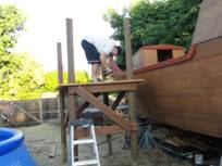To make a long story short, I have been working on a 37 foot Pirate ship playhouse for the past 4-1/2 years during the Spring/Summers and was to have the ship completed this last Summer 2011. Well my work vehicle was rear ended last March 2011 (10 months ago) with me in it and it looks like I may not be Physically able to complete it myself with 80%-90% already completed.