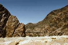 The Boat Beach at Phantom Ranch lies about 88 miles downstream from Lee's Ferry, and it's our first return to civilization in the past eight days. We land there at about 10:30, refill all the boats' water jugs, and then I have some time to visit the canteen, where I buy a couple of ice-cold lemonades and some postcards ("delivered by mule from the bottom of the Grand Canyon," the stamp at the bottom reads, and it's true). But of course I've left my address book in the bottom of my very bottom dry bag, strapped to the floor of my raft under three other bags and a contraption of plastic boat fenders intended to float the hydro generator that Dave and Leif Mortenson have brought along.