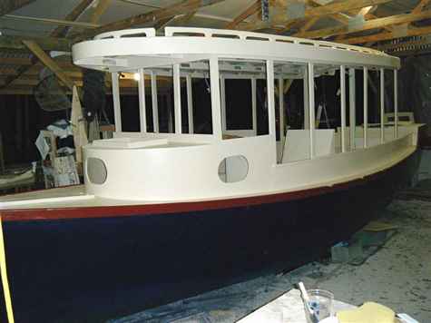 Hey we are glassing the Tolman Jumbo skiff now. She is 27 ft, 1 inch. We stretched it. It's the biggest Tolman Jumbo ever made. Hull flipping is in about two weeks, (40-50 more hours).