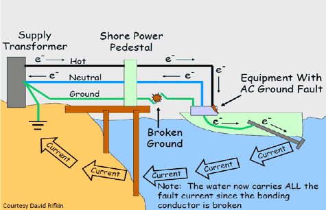 • NEVER dive on your boat to work on underwater fittings when it is plugged in to shore power, even in saltwater.