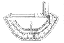 The planks went on each side at the same time, till they were half way to the sheer. At this time the men went inside the hull to frame it up from keel to above the waterline. The rowing benches were put in and the deck, which was partial. The final job was to cover the ship with woven linen, painted white with scenes of birds and dolphins. Sort of a 150 foot canvas job. The canvas salesman could probably retire to Miami Beach.