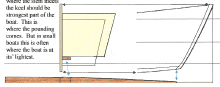we have four points where we can drive nails, laying our batten around the outside of the nails. But that might not be enough. He might put in a diagonal for another point below the first waterline to take that real curve. So, here is the diagonal in an enlarged view.