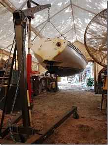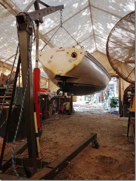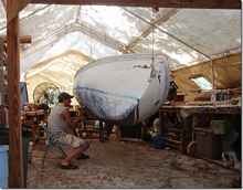 Steve's giving Chelsea a complete overhaul and took these pictures of her bottom to show why the Whitehalls were such great boats. Once you get them moving they don't want to stop. I've told you about how much trouble we had getting her to slow down, this is why.