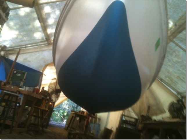 It's really heavy, about forty pounds so he needs a trailer to move it. He still has the interior cabin detail to do but it'll be fun to see in the water.