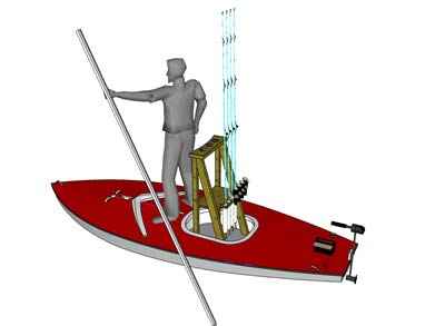 Last is another rendering for a fishing boat. We've got a kid who comes around when he needs something, is there any other kind, who loves to fish in small places. He goes out in kayaks but would really love something he could stand up in. He ask if we could possibly have an old sunfish hull laying around out in the woods and of course we do. I have a 1974 hull in perfect shape. This should be a good place for him to start. All you have to do is peak my interest and I'm fully on board to go for it.