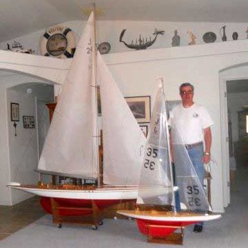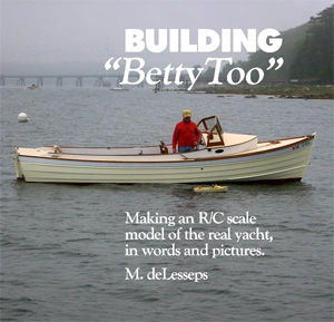John Hanks III of the US whom I have written about before is well known as one of the leading sailors and promoters of the big J Class model racing yachts, but it is not so much about that aspect of his hobby I write about, instead it is about his skill in producing what some call `deck houses’ (what others like I tend to refer to as `skylights’. John who also sails a smaller Canterbury J Class boat has been so kind as to offer to produce (which he did at no cost whatsoever to me) a few of these wonderfully constructed absolutely beautifully made ship fittings for me for me in varying sizes, one of these now fitted to my classic little John Stubbs made Footy of mine called Sixpence. That is John at work above on the ones he sent me and this is not to suggest in any way that he seeks orders from people. (I don’t know because he has never said so and I have never asked him, but I have found that they are fiddly little things to make and it would be a great service to model shipmodellers new to the hobby, and like the writer, enthusiastic but largely unskilled and therefore unable.) Book ReviewFor kindle or lap top, this is the very first E Book that I have really seen for I am not a `kindler' but M. de Lesseps (I know him as Mike, he calls himself Lesseps!) a now retired Art Director in serious US advertising agencies and for a long time a restorer of pond models has sent me a hard copy of a little book called Building "Betty Too', an RC scale model of an original boat by Harry Bryan, the model built by Mike for a friend of his who owns the speedboat itself.
