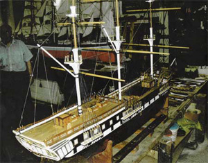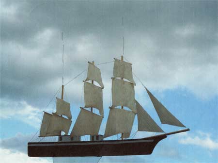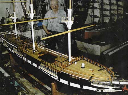 On 21st August way back in 1857, the Dunbar caught in a heavy gale at Watsons Bay, Sydney, foundered and smashed herself into the cliff face at night with the loss of 121 passengers and was the worst ever disaster in the maritime history of Australia. Ian Hunt's model is built to a scale of 1/36 and has an overall length of 8' 2". |