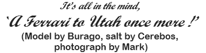 Okay listen up fellas and look sharp. In July I am off to the salt flats in the US for another run in REDS my Ferrari as I try for the record in that class. Once again I will have my celebrated pit crew, the Salty Broads in their topless almost bottomless polka dot bikinis servicing the snarling beast from Maranello, Italy, my pride and joy.