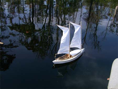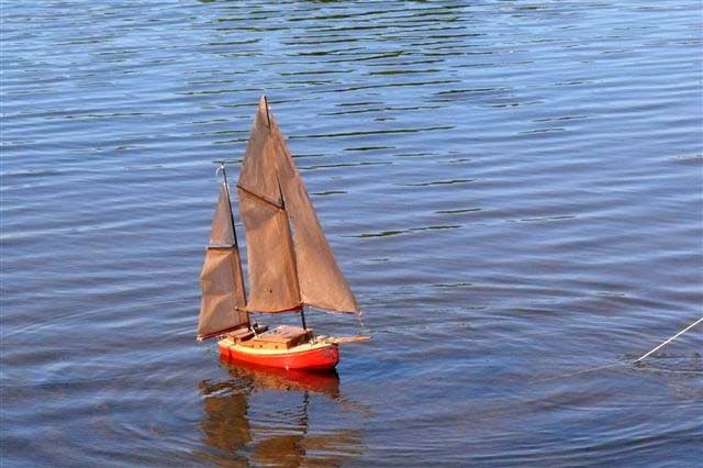 Areas in the construction have been covered and in clear and concise manner, and dear to my own heart is Mike's point made (akin to mine) that model boats on a lake or pond with no crew on board is just unrealistic. Model boats need figures in order to create the illusion, just as much I think, as I need imagination as I sail up and down a strait or rugged coast that could be anywhere while controlling the steering and sails and keeping an eye on changing tide and wind conditions. Needless to say, Mike has carved his own figures. If you are a builder of model ships and one that is happy and well versed in the use of a lap top, or if you are a kindle kind of person, then for just eight US dollars (presumably plus postage) you can get this e book from Amazon. Maybe it is the start of a whole new trend toward kindle and/or electronic reading, who knows? Plaudits anyway, that even the dumb such as I can understand it. Egret with `Crazy Herb’ sets sail